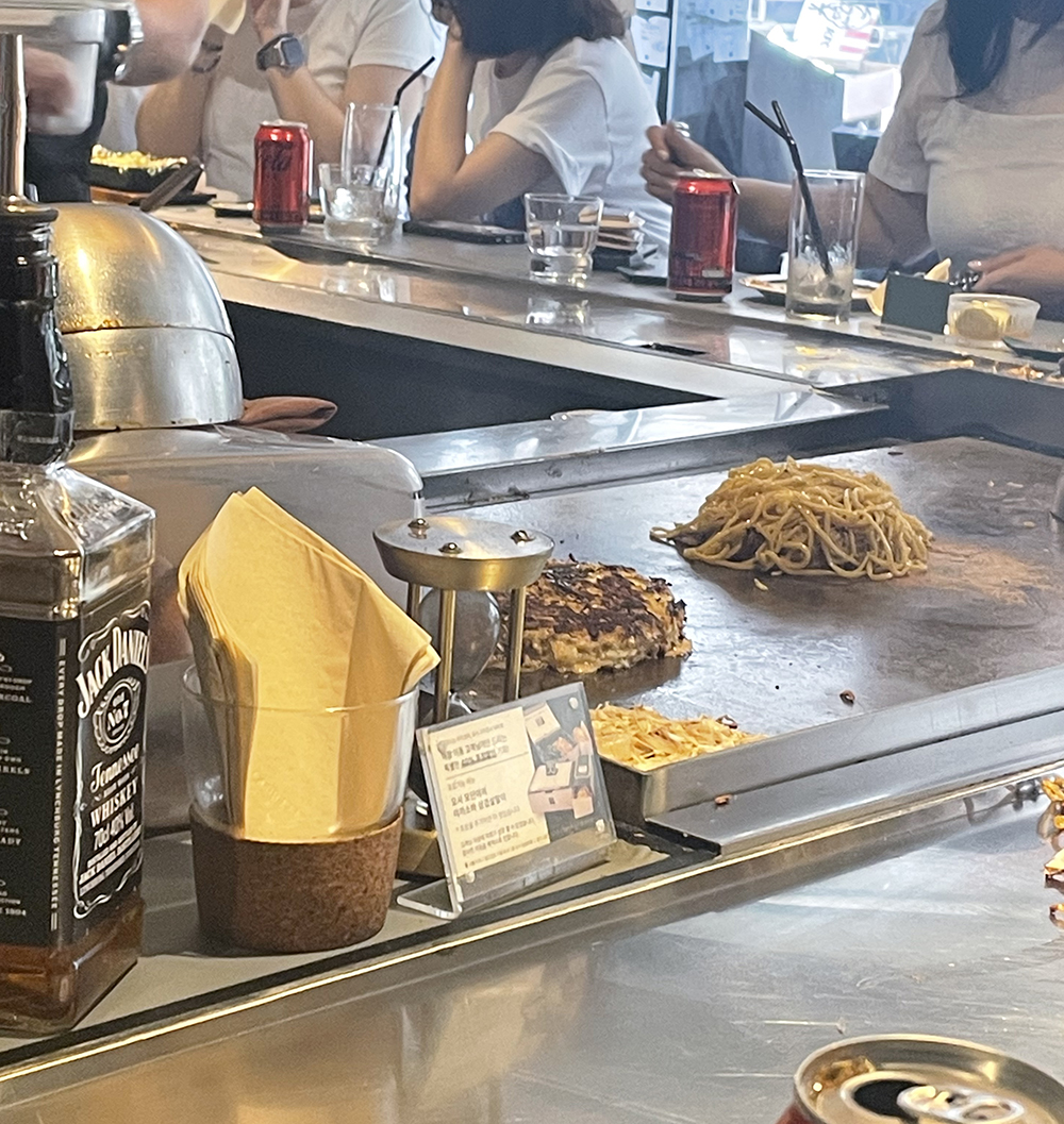 남들 먹는 메뉴 구경하기. 오코노미야끼 메뉴가 상당히 많아서 고르는데 상당히 오래 걸리긴했다. 우리는 삼겹살야끼소바말이? 메뉴이름이 어렵다 ㅋㅋ 아무튼 이 베스트에 메뉴와 네기오코노미야끼 두 개를 일단 주문하긴했다. 다른 테이블을 보니 이것저것 다양하게 시켜 먹는 것 같았다. 뭐 다 맛있나봄.