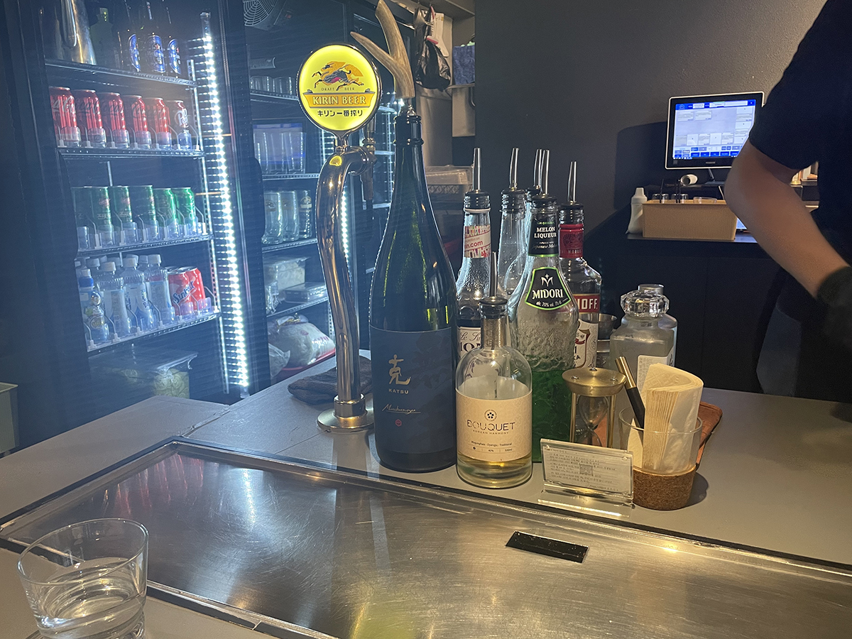 우리는 맨 안쪽 두 자리를 안내 받음. 앞에 가지런히 놓인 술병들이 아름답다. 음료도 이미 주문하고 들어갔다.