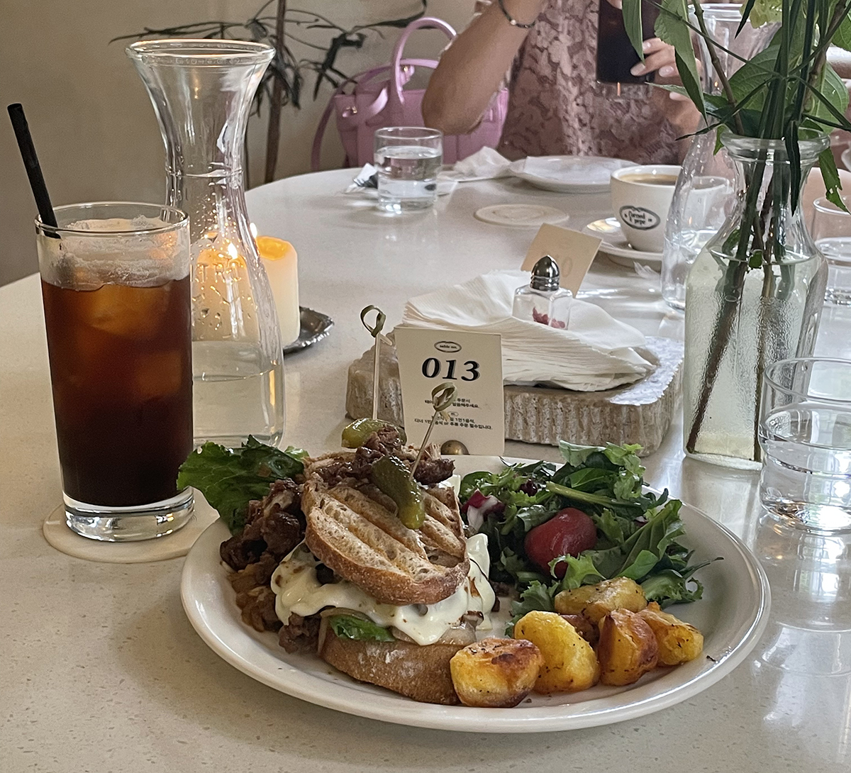 주르륵 함께 구워져 녹아 흐른 치즈... 불고기와 너무 잘어울리고, 불고기도 푸짐하게 들어가 있다. 완벽하게 카라멜라이징 된 양파며... 디테일이 훌륭한 샌드위치이다. 샐러드 소스도 훌륭해서 곁들이기 좋았음. 전반적으로 음식 재료가 다 서로서로 잘 어울렸다.