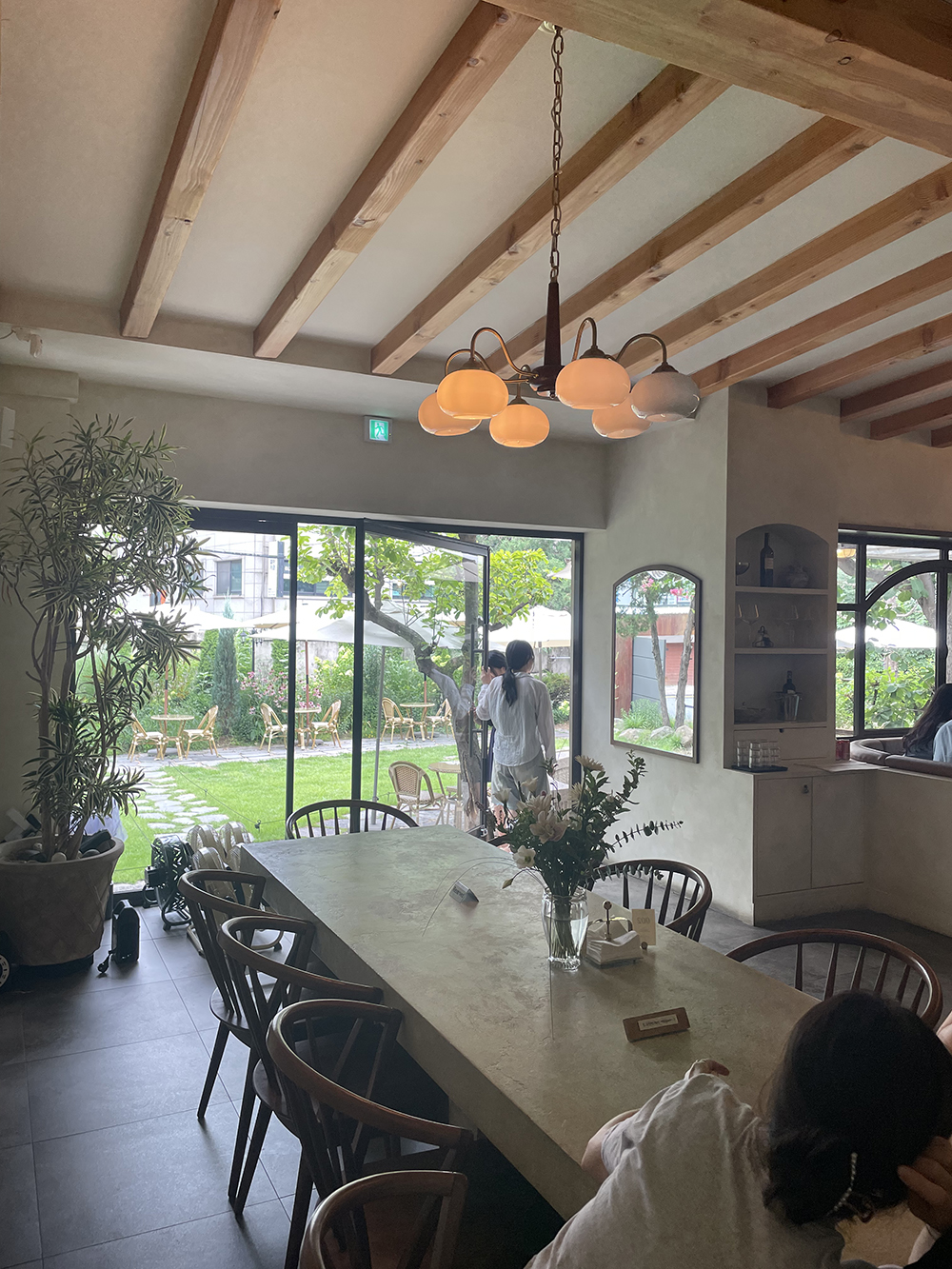 내부가 엄청 크고 예뻤는데, 한여름이라 녹음이 피크로 우거져 더 분위기가 좋았다. 잔디와 정원 관리도 보통일이 아닐텐데 아주 깔끔하게 관리가 잘 되고 있는듯하다. 너무 더운날이었어서 바깥 자리보다는 실내가 먼저 채워지고 있는 듯했다. 건물 크기나 정원 크키를 봐선 수용인원이 꽤나 많은 듯. 웨이팅 30번대였는데 (오픈 30분 전부터 캐치테이블 온라인 웨이팅 가능) 매장 오픈 약 40분 정도 후에 입장할 수 있었다. 오래 기다린 느낌은 아니었다.